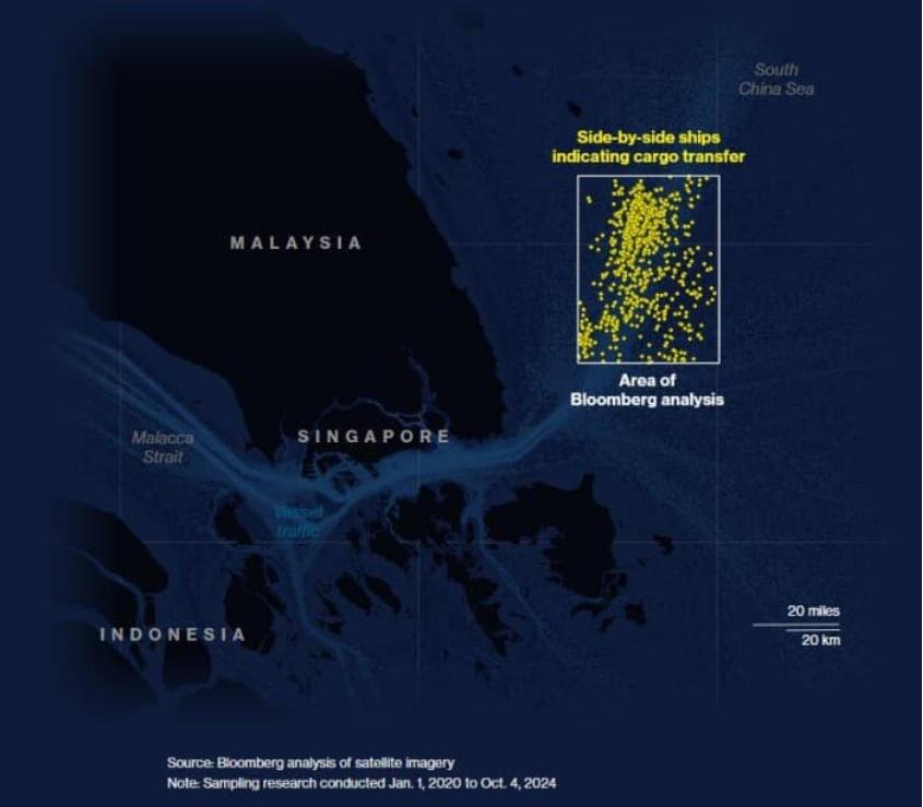 虽然最近对俄罗斯STS的打击可能推迟了这一活动,但肯定不会阻止它。无论如何,与马来西亚半岛以东40英里处发生的史无前例的STS活动相比,它显得微不足道,而马来西亚半岛以东40英里处是“世界上最大的暗舰队油轮聚集地”。