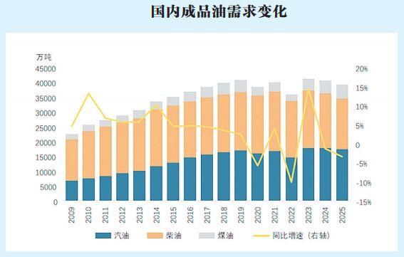 [中国石化报 2025-01-23]新建一体化项目投产,国内产能继续增长。自2019年以来,以民营炼化为代表的大型炼化一体化项目承担了国内炼油产能扩大的主要角色。恒力石化、浙江石化(一、二期)、盛虹石化、裕龙岛项目等先后投产,2024年末累计产能达9600万吨/年,占全国炼油产能10%左右;中科炼化、广东石化等国有集团新建项目也在“十四五”阶段陆续实现运行;已建炼油企业,如镇海炼化、华北石化等也完成扩能改造。截至2024年末,国内炼油产能达9.54亿吨/年。