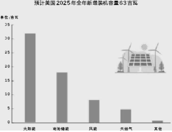 太阳能和电池储能将在2025年引领美国新增发电容量(图)