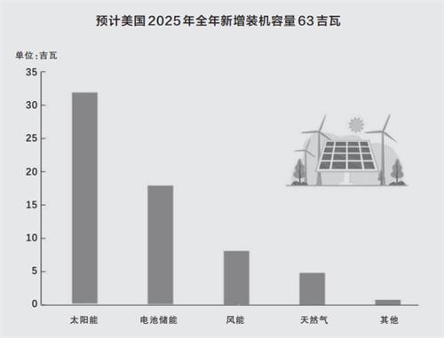 太阳能和电池储能将在2025年引领美国新增发电容量(图)