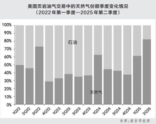 睿咨得能源认为,受油价波动、关税政策及欧佩克+增产影响,全球石油上游并购活动将继续下降。然而,天然气并购活动,尤其是美国页岩油和加拿大蒙特尼地区的并购表现良好。今年年初,美国页岩气并购大幅反弹,一季度页岩气交易价值飙升30%,天然气在全部能源交易中占62%的份额;到了第二季度,天然气更是占到能源总交易额的约82%,为2019年以来的最高水平。南美洲、非洲和欧洲的天然气交易活动预计也将回升。