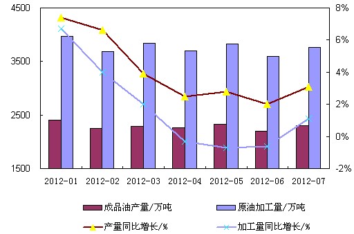 7月原油加工量环比增4.5%成品油产量同比增3.1%