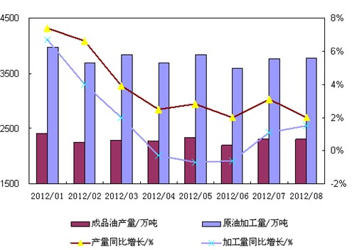 8月份原油加工持续回升(图)