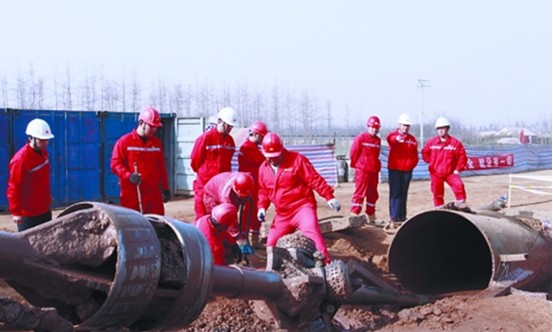 12月17日8时,大辽河两岸静悄悄的,只有机器的轰鸣声回荡在空中,每个人都悬着心伫立在大辽河东岸大堤上。现场紧张的气氛足以让冰封多日的大辽河动容。顷刻间,大辽河两岸沸腾了,经过36个小时的地下连续穿行,携带着海缆的主管道终于破土而出。大辽河穿越宣告成功,一项新的世界纪录就此诞生。穿越公司又一次用骄人业绩向世界证明了“中国第一穿”的卓越实力……