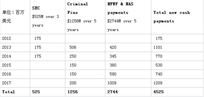 以上所有支付款项将在2017年底前分批次缴纳,美国证券交易委员会所涉支付款项将在2014底以前缴清。