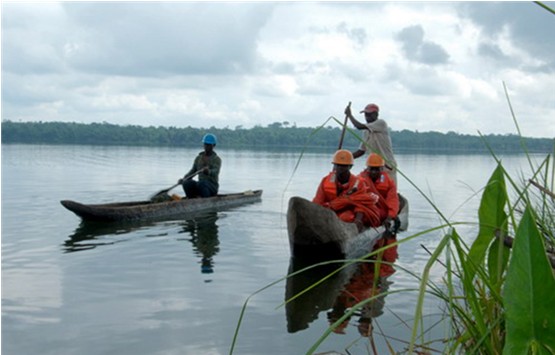 图为春节期间,海外物探队员在复杂的丛林中作业。董功摄