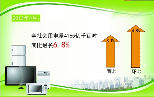 [中国石油新闻中心2013-05-17]据中国证券报报道国家能源局数据显示,4月全社会用电量4165亿千瓦时,同比增长6.8%。这一增速比去年4月上升了3.1个百分点,比今年3月上升了4.8个百分点。值得警惕的是,在重工业用电量复苏回升的同时,第三产业用电量的增速则在缓慢下滑,3月甚至出现了负增长。第三产业被视为促进经济转型升级的核心。业内人士提醒,在经济回暖过程中,需警惕高耗能行业的强势复苏,这将不利于产业结构调整。