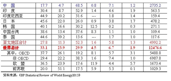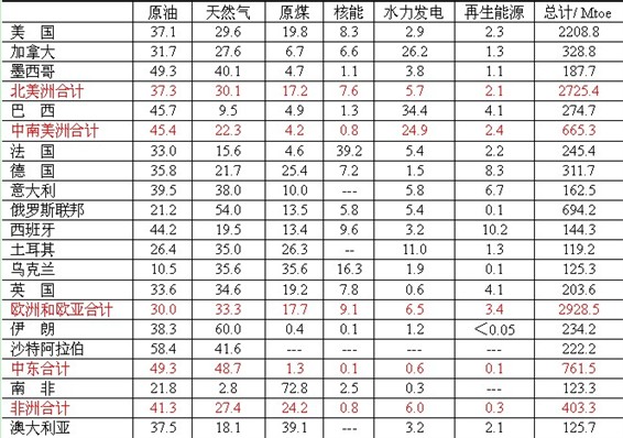 [中国石化新闻网2013-07-30]本文所指的一次能源是指商业贸易的燃料,包括用于发电的现代可再生能源。本表只取一次能源消费大于100百万吨油当量(Mtoe)的国家。