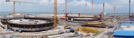 广西液化天然气工程是以中石化为主投资的国家重点工程,一期设计接收能力为300万吨/年,4座16万方的LNG储罐及地上管架、地下管线、道路等,计划于2015年9月30日建成交工。该项目是SEG联合体模式探索的试点项目,由LPEC、十公司、五公司组成的联合体,发扬“一家人、一条心、一股劲、一个目标”的精神,精诚团结,密切协作,经过半年多的磨合,已逐步得到业主、监理等各方的认可,现场施工管理运行正常,施工进度、安全、质量全面受控。继2012年12月21日桩基工程开工后,储运分公司及项目部精心策划,优化组织,强化管理,开展培训,加强人力物力协调,避开高温作业,安排好职工生活,让职工住的安心、吃的舒心、干的欢心,促进了工程进展,至4月上旬1468根桩基全部完工,4月3日3#罐罐底防雷接地网开始施工,4月10日3#罐罐底地坪开始施工,6月5日3#罐承台开始浇筑。目前,4台罐防雷接地网和地坪施工全部结束,承台混凝土浇筑全部完成,3#罐罐壁第一带混凝土浇筑完成,2#、4#、1#罐第一带混凝土浇筑计划于8月底全部完工,穹顶型钢弯弧完成100%,穹顶片预制正在有序地进行。