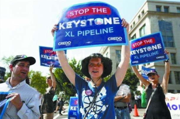 当地时间8月12日,约200人在美国国务院前示威,抗议输油管道(KeystoneXLpipeline)项目,因为管道建设涉及环境污染等问题。这条管道长近2000公里,建成后将从加拿大输油到美国得克萨斯精炼。