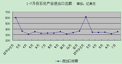 总体上看,今年以来石化对外贸易仍未摆脱去年以来的低迷态势;从环比看,7月份对外贸易形势有所好转。