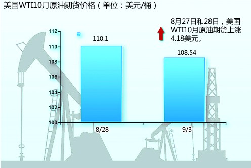 消息面上,地缘政治因素对短期原油走势的影响更为明显。8月底,美国对叙利亚动武预期的升温直接导致国际油价全线蹿高。8月27日和28日,美国WTI10月原油期货上涨4.18美元,28日收盘价为110.1美元/桶,升至2012年2月以来18个月的新高。但在美叙形势暂时缓和的影响下,国际原油价格又出现大幅下降,9月3日,美国WTI期货价格下跌至108.54美元/桶。