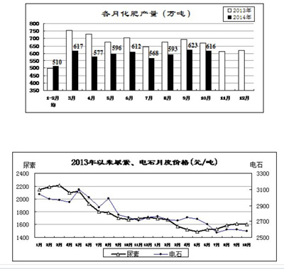 重点监测的化工产品中,部分产品价格比上月回升。10月份,烧碱(片碱)平均价格为2180元/吨,比上月下跌5.2%,同比下跌13.8%;纯碱1600元/吨,比上月上涨0.4%,同比上涨3.2%。尿素1600元/吨,比上月下跌0.6%,同比下跌4.8%;国产磷酸二铵2880元/吨,比上月及去年同期均上涨4.7%。电石2580元/吨,与上月下跌0.8%,同比下跌7.2%。