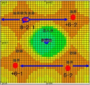 油井8-2.1井采收率低,通过实施换向驱油技术,使油井转换为水井,改变井网驱替方式,扩大注水波及体积,有效将层间剩余油驱出,分别通过周围油井采出。