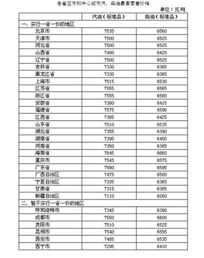 5月11日24时国内汽、柴油价格每吨分别提高120元、115元