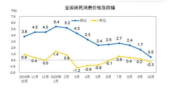 统计局:10月份CPI同比上涨0.5% 市场供求总体稳定(图)