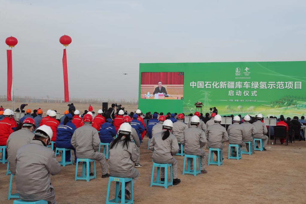 11月30日,中国石化新疆库车绿氢示范项目开工建设,投产后年产绿氢可达2万吨。(中国石化供图)