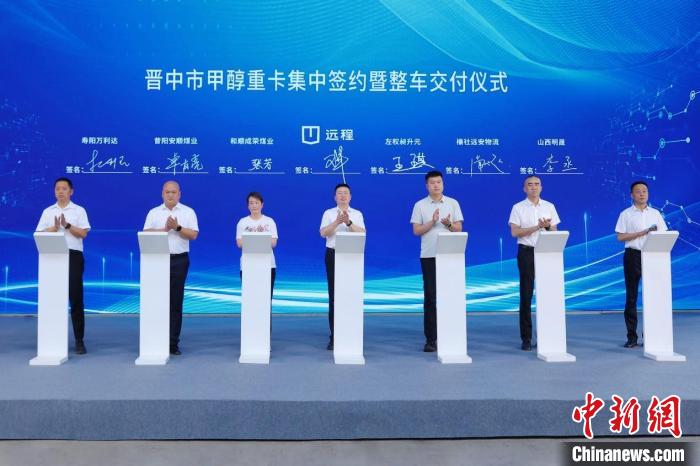 中新网晋中6月16日电(杨杰英张云)6月16日,晋中市甲醇重卡集中签约暨整车交付仪式在远程新能源商用车集团晋中基地举办。超千辆甲醇重卡现场签约,加速了晋中市建设国家级甲醇经济示范区的进程,同时也拉开了山西省大力推广甲醇重卡的序幕。