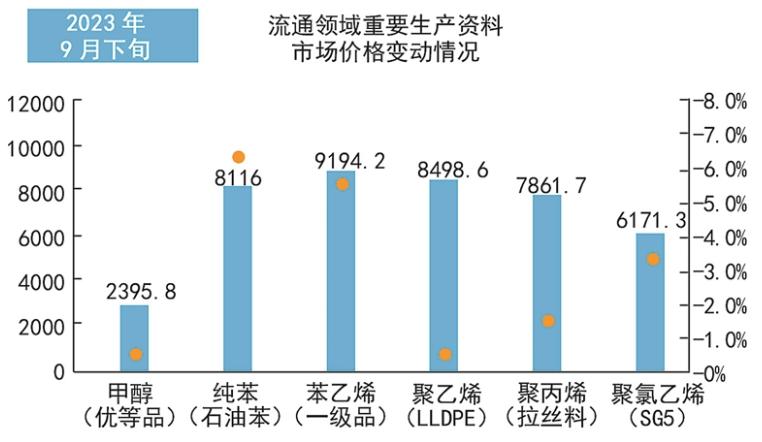 ■9月25日至29日,聚乙烯期货价格震荡下跌,下游需求向好,管材开工率44%,环比提高3%;农膜开工率50%,环比提高2%;包装开工率58%,环比提高1%;其他行业持稳。受石化及中间商积极降库的影响,聚乙烯市场价格弱势下行,市场主流价格为8851元/吨,周环比下跌80元/吨,跌幅0.9%。
