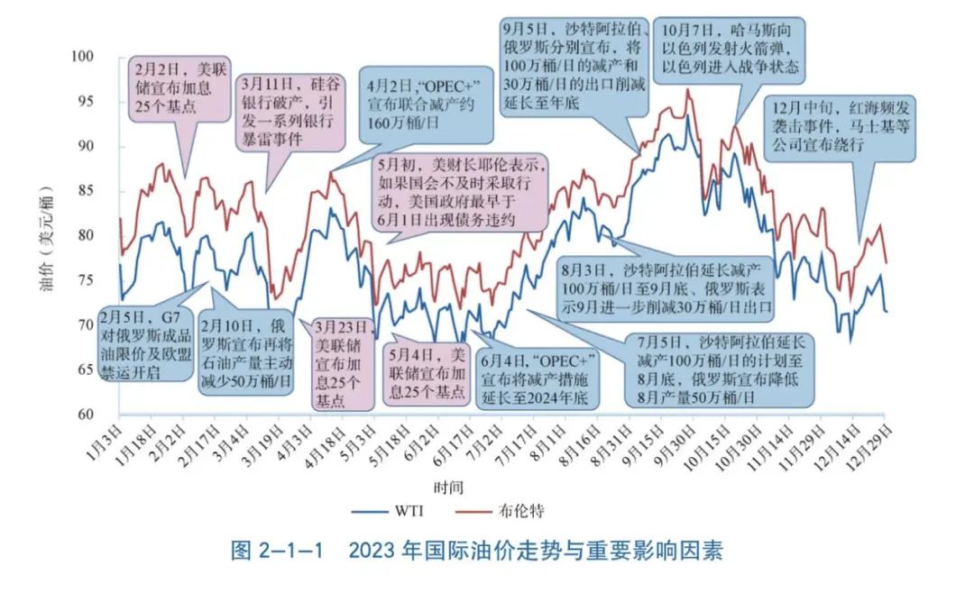 2023年,国际油价同比回落。布伦特原油期货全年均价为82.17美元/桶,较2022年的99.04美元/桶下跌17%。国内油价经历了“十涨十二跌三搁浅”,下调次数比上调次数多两次,涨跌相抵后,汽油价格比2023年年初有所下降。那么,2024年国际油价将迎来什么样的走势?随着经济复苏,油价又将受到哪些因素的影响?