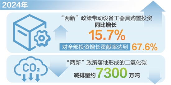 [中国石油新闻中心 2025-02-13]中国石油网综合消息 据国家发展改革委2月10日消息,2024年,我国“两新”政策带动设备工器具购置投资同比增长15.7%,对全部投资增长贡献率达到67.6%,带动大宗耐用消费品销售额超过1.3万亿元,形成节能量约2800万吨标准煤、减少二氧化碳排放约7300万吨。