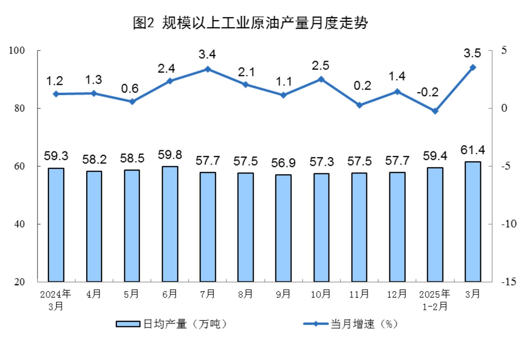 1—3月份,规上工业原油产量5409万吨,同比增长1.1%。