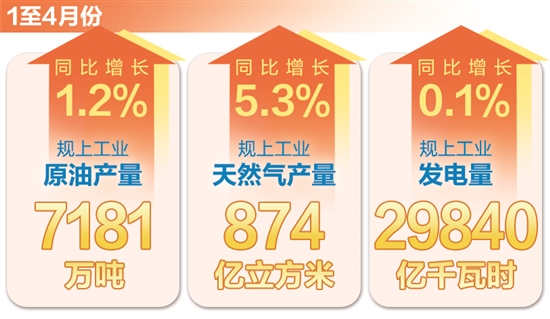 天然气生产增速加快。4月份,规上工业天然气产量215亿立方米,同比增长8.1%。1至4月份,规上工业天然气产量874亿立方米,同比增长5.3%。