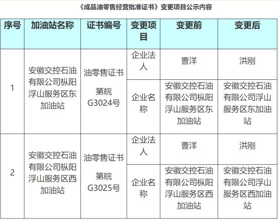 安徽省铜陵市成品油零售经营批准证书变更公示