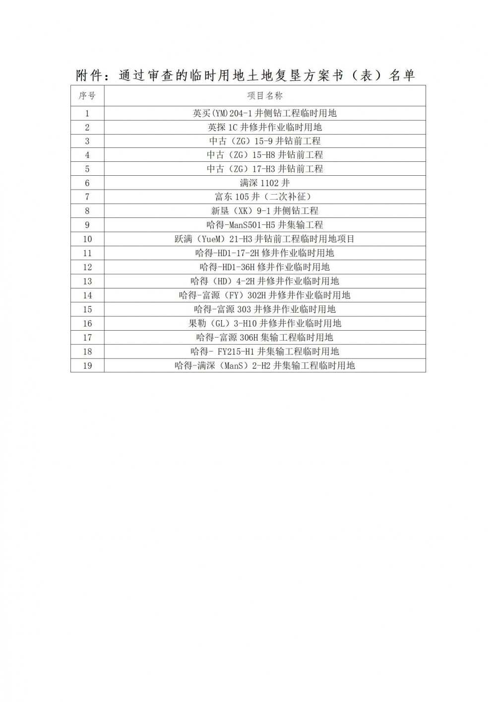 附件:通过审查的临时用地土地复垦方案书(表)名单