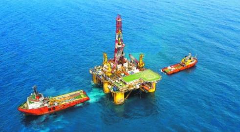 加快海上重要资源阵地建设向海图强,谱写能源报国新篇。中国石化加强海域成藏基础研究,积极推动OBN物探攻关,加快海上高效增储上产重要资源阵地建设。图为上海海洋石油局勘探四号平台在北部湾涠洲油田开展承钻作业。