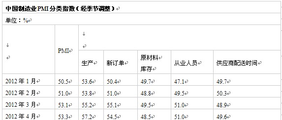 [国家统计局网站2012-08-01]中国制造业采购经理指数(PMI)为50.1%,比上月微落0.1个百分点,略高于临界点。