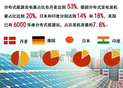 分布式光伏发电能有效提高同等规模光伏电站的发电量,并解决电力在升压及长途运输中的损耗问题。据统计,分布式能源发电量占比在丹麦达到53%。德国分布式发电装机量占比达到20%,日本和印度分别达到14%和18%。美国已有6000多座分布式能源站,占总装机容量的7.8%。