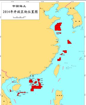 中国海上2014年推出33个开放区块与外国石油公司合作,总面积126,108km2,各区块基本信息见附件1-3,请点击下载。