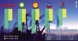 油价触底回升,虽产量有所增长,但受持续两年低油价影响,去年国际大石油公司的前三季度经营业绩仍低于2015年。同时也应看到,降幅相比2015年已在缩窄,呈现出逐季回升的态势,2016年前三季度五大国际大石油公司合计营业收入和净利润分别下降20.7%和41%,较2015年同期下降38.03%和69.09%有所好转。估计随着行业形势的进一步企稳,四季度各公司业绩会出现不同程度反弹。