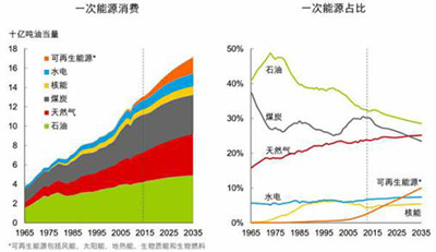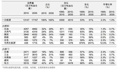 BP的基本判断是,2015至2035年,全球能源需求预期增长30%左右,年均增长1.3%。这一增速明显低于全球GDP年均3.4%的预期增长速度。