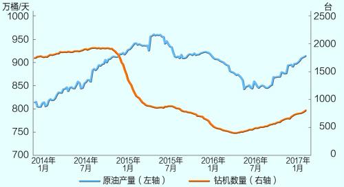 二是技术创新令美国非常规油气“华丽转身”。根据摩根士坦利的统计,2015年年初,美国致密油生产成本高达65美元/桶,而中东陆地油田的生产成本仅为27美元/桶。成本劣势令美国非常规油气资源在低油价时面临巨大的竞争压力,尤其是面对石油输出国组织(欧佩克)利用成本优势,采取以“低价换市场”的策略时。由于油价持续走低,美国原油产量从2015年年中约960万桶/天下降至2016年年中约850万桶/天,降幅超过10%。这表明一些高成本的非常规原油因低油价的“挤出效应”被驱赶出全球原油供应市场。技术创新改变了这个状况。2016年年中,随着重复压裂、地质大数据等新技术手段的应用,美国非常规油气生产效率大幅提升,生产成本得以大幅下降。能源咨询公司RystadEnergy数据显示,2016年,美国巴肯、鹰滩等主要致密油盆地的井口盈亏平衡价格已经降到40美元/桶以下,这意味着美国非常规油气厂商的盈利能力显著增强。因此,尽管低油价仍在持续,但美国原油产量已经从2016年年中开始逐步回升,目前约为910万桶/天。