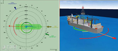 另外一种更真实的方法是对船舶进行模拟,以预测其在环境力作用下的移动路径。最新的方法是采用一个全耦合图版,它将隔水管和船舶集成到了单个模型中,如图。
