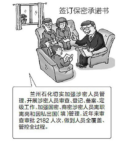 在涉密人员管理中,兰州石化严格按照国家和集团公司对涉密人员管理要求,开展了涉密人员审查、登记、备案、定级工作,重新确定了国家秘密涉密人员,并在兰州市公安局备案。