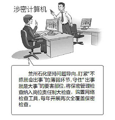 “加强保密工作的关键是抓好定密、网络和涉密人员‘三大管理’。”兰州石化公司办公室保密科科长支随保说。