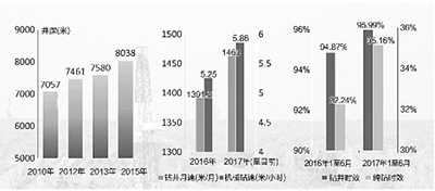 塔里木油田历年井深、钻速、钻井时效变化示意图刘佳杰/制图