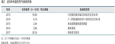 22017年冬季我国天然气供需形势预判