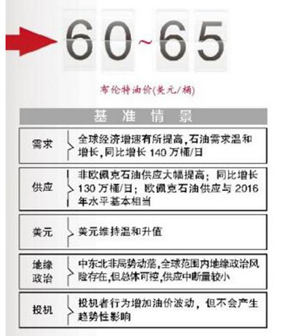 如果2018年第一季度油价保持在60美元/桶以上甚至超过70美元/桶,那么2018年第二和第三季度油价会面临较大的下行压力,第四季度油价应该会因季度性因素而回升。从全年看,2018年欧佩克一揽子原油平均价可能为65美元/桶上下。