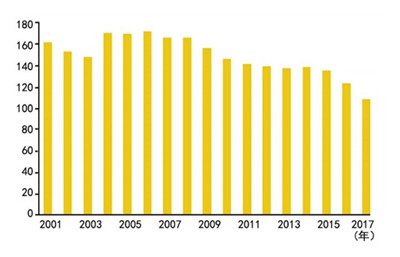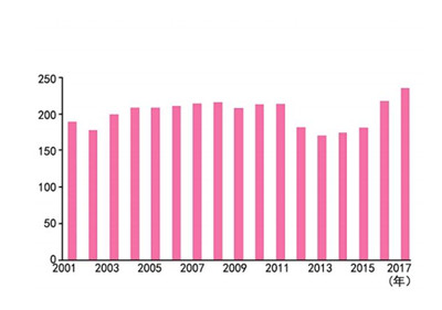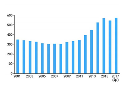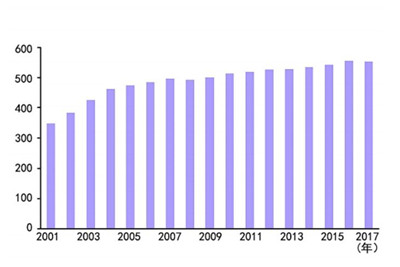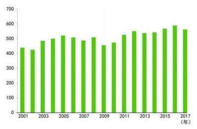 沙特阿拉伯原油产量(2001年至2017年)(百万吨)