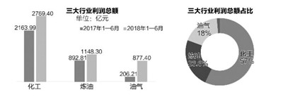 石油和化工行业利润也实现较大增幅,上半年利润总额4861.0亿元,同比增长46.6%,比前5个月加快5.0个百分点,占全国规模工业利润总额的14.3%,比去年同期提高2.4个百分点。从细分领域来看,炼油行业增加值增幅最大,达7.3%;化工行业的主营业务收入占比最高,同比增长10.3%,占石油和化工行业61.0%;油气行业利润总额增幅最大,同比增长325.5%,实现利润877.4亿元,占石油和化工行业利润总额的18.0%。