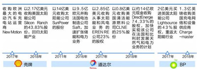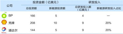 2017年国际大石油公司新能源投资金额及研发投入占比