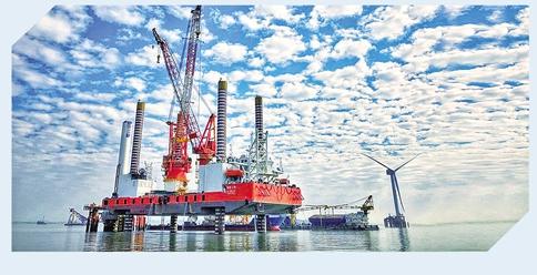 图为建设中的福建福清兴化湾30万千瓦海上风电场一期工程。王轶辰 摄