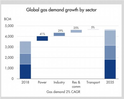 全球天然气需求增长(按行业划分)