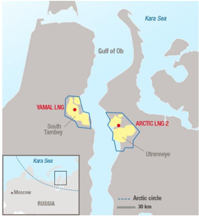北极LNG2项目位于俄罗斯北极格丹半岛(GydanPeninsula),是诺瓦泰克公司继全球规模最大的亚马尔液化天然气项目(YamalLNG)之后,在偏远极地开发的第二个大型液化天然气项目。该项目包括Utrenneye天然气田的开发和生产以及三条LNG生产线的建设和运营。