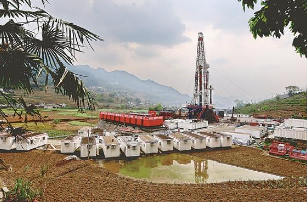 中国石油川庆钻探队伍在长宁页岩气标准化井场施工。