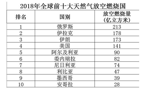 据世界银行全球天然气减排合作协会(GGFR)今年年中公布的数据, 2018年,全球天然气放空燃烧量达1450亿立方米,较2017年增加44亿立方米,增幅为3%。